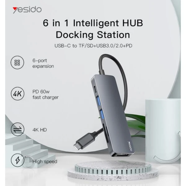O Yesido HB11 é um adaptador multifuncional projetado para expandir a conectividade de dispositivos com porta USB Type-C. Com um design compacto, elegante e acabamento metálico, ele combina praticidade e estilo. Este hub oferece seis portas essenciais: